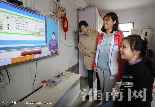 4月10日,淮南報業傳媒公司黨支部組織黨員自費購買書包、文具用品,來到壽縣隱賢鎮姚祠村,送給居家學習的部分中小學生。圖為在就讀于鎮聯合小學四年級彭靜靜的家中,支部同志陪伴她愉快地上了一節古文詩詞課。(記者 張越)