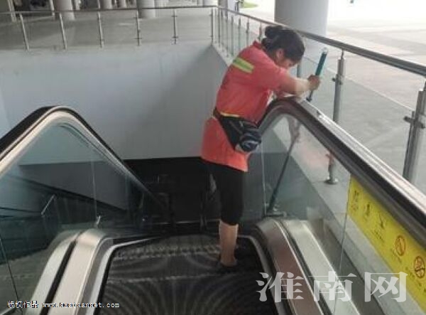 圖為電梯調試階段,物業保潔人員對電梯進行保潔。