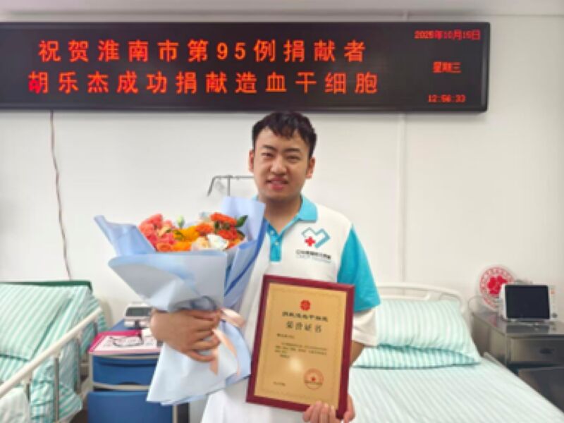 10月15日,一個承載希望的日子。在安徽省立醫院采集室內,23歲的胡樂杰成功捐獻了造血干細胞,為一位素昧平生的血液病患者點亮了重生之光。他也因此成為淮南市第95例造血干細胞捐獻者,用實際行動履行了一場跨越五年的“生命之約”。