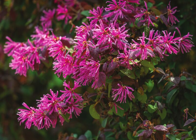 紅花檵木與花文化——紅花檵木是中國(guó)本土植物,1938年才在湖南被發(fā)現(xiàn)并命名,現(xiàn)在已經(jīng)遍布南方。在漢字中,“檵”除了偶爾可代枸杞之“杞”外,幾乎是檵木的專用字。檵字中的四個(gè)“纟”,表達(dá)其絲狀花瓣絲絲縷縷,更像是一條條紙彩帶,所以紅花檵木又名“紙末花”。紅花檵木具有財(cái)富與繁榮、幸福與和諧、永恒與傳承的三重核心內(nèi)涵:紅色花朵被視為吉祥之色,花語(yǔ)中包含“發(fā)財(cái)”的寓意,如在節(jié)慶場(chǎng)景中應(yīng)用,寓意財(cái)富與繁榮:常綠枝葉是幸福長(zhǎng)久的具象化表達(dá),明艷花色則象征生活喜悅的積累,寓意幸福與和諧;花朵簇?fù)淼男螒B(tài)成為情感連接、相伴永遠(yuǎn)的象征,常常用作愛(ài)情的信物或婚慶的裝飾,寓意永恒與傳承。
