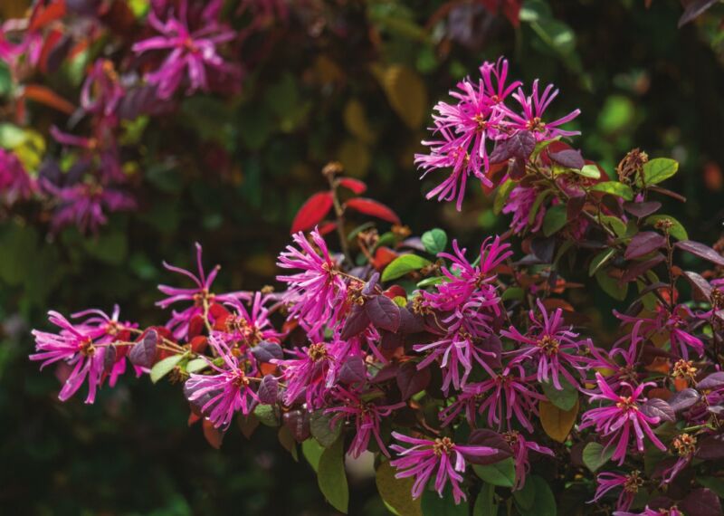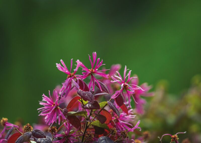 霜降的淮南“花代”——紅花檵木是金縷梅科檵木屬常綠灌木,花朵盛開時(shí),3-8朵帶狀花瓣的小花簇生在枝梢頂端,花開滿樹,極為壯觀。紅色如團(tuán)團(tuán)火焰,熱情怒放;紫色如絲綢輕舞,嬌美多姿;白色如蟬翼菲薄,雪掛枝頭。向陽(yáng)丘陵和山地是檵木非常適宜的生長(zhǎng)環(huán)境,淮南主城區(qū)中央的低矮群山中,檵木植株隨處可見。《淮南市城市綠化工作導(dǎo)則(試行)》將紅花檵木作為城市綠化的推薦品種,對(duì)苗高、冠帽和種植密度都加以規(guī)范。按照《導(dǎo)則(施行)》標(biāo)準(zhǔn),洞山、五一、淮河、老龍眼濕地等公園都栽植了成片的紅花檵木,市區(qū)主干道重要交口的草花改造也增加了紅花檵木。紅花檵木春秋兩季開花,現(xiàn)在正當(dāng)秋季盛花期九十月份,特將其確定為寒露時(shí)節(jié)的淮南代表性花卉。