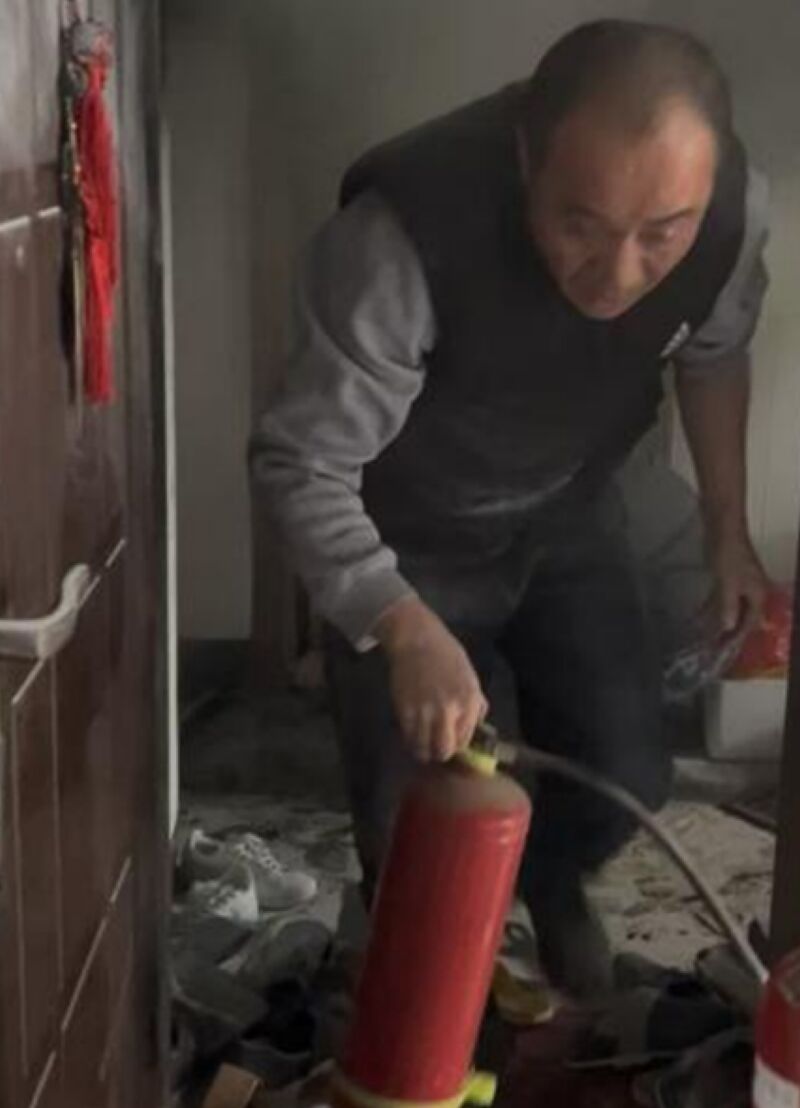 一個滅火器很快耗盡,接著第二個也用完了。火勢仍在蔓延,屋內不斷傳出爆炸聲,高溫炙烤下,劉鵬遠的衣服沾滿灰燼,濃煙嗆得他劇烈咳嗽。匆匆趕來的妻子看著丈夫狼狽的樣子,心疼地勸阻:“太危險了,等消防隊吧!”
