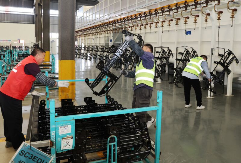 日前,位于壽縣新橋工業(yè)園的安徽泳恒科技有限公司正式運(yùn)營(yíng)生產(chǎn)。該項(xiàng)目依托廣州德恒智能裝備技術(shù),在建成高標(biāo)準(zhǔn)電泳涂裝生產(chǎn)線的基礎(chǔ)上,將擴(kuò)建汽車零部件智能焊接、加工與裝配生產(chǎn)線,實(shí)現(xiàn)汽車零部件制造全流程智能升級(jí)。圖為電泳車間的后排座椅骨架涂裝完成下線。