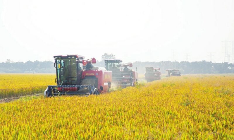 11月2日,金色的陽光灑滿田野,淮南農(nóng)場迎來豐收的喜悅,連片的稻田翻涌著金色的波浪,沉甸甸的稻穗壓彎了枝頭,收割機(jī)在田間來回穿梭,將金燦燦的稻谷盡數(shù)歸倉,奏響金秋時(shí)節(jié)里最動聽的豐收交響曲。