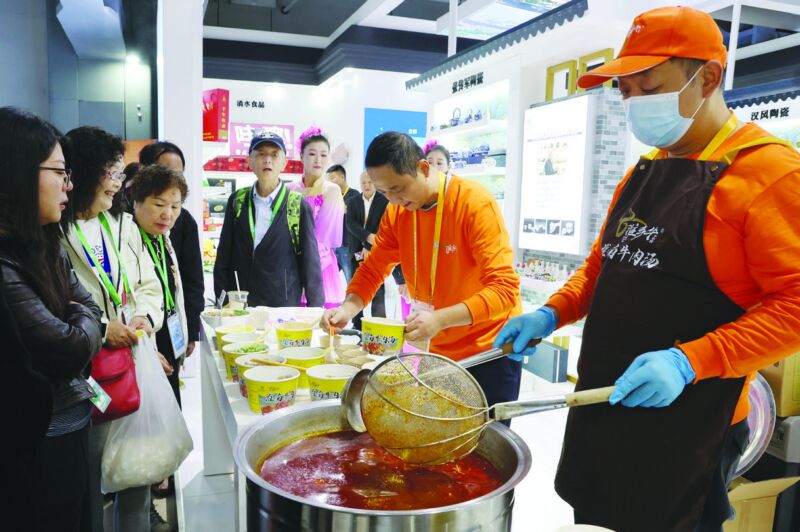 淮南牛肉湯香飄進(jìn)博會(huì)。