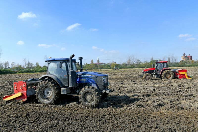 針對陰雨天氣對江淮地區(qū)小麥種植影響,我市通過推廣圓盤犁翻耕快速散墑技術,選取適宜立冬之后播種的春性小麥品種,組織220名農技人員為1100余戶種糧大戶進行全程種植技術服務,通過良種良技推廣運用,保障冬小麥及時播種。圖為11月12日,鳳臺縣顧橋鎮(zhèn)顧橋村通過推廣稻田快速散墑技術,搶種冬小麥。