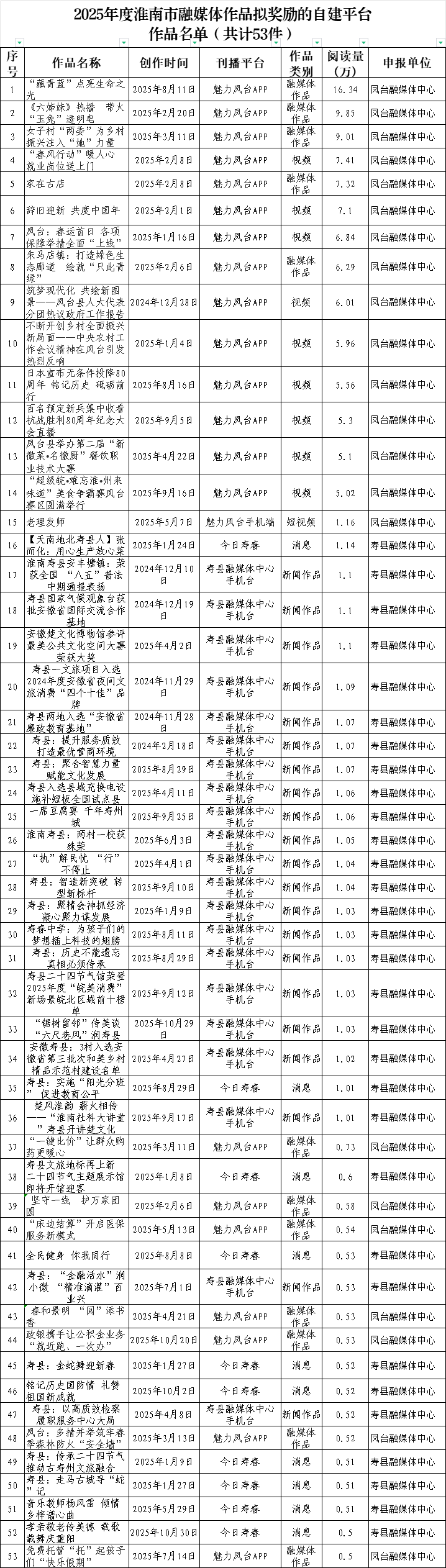 2025年度淮南市融媒體作品擬獎勵的自建平臺作品名單公示