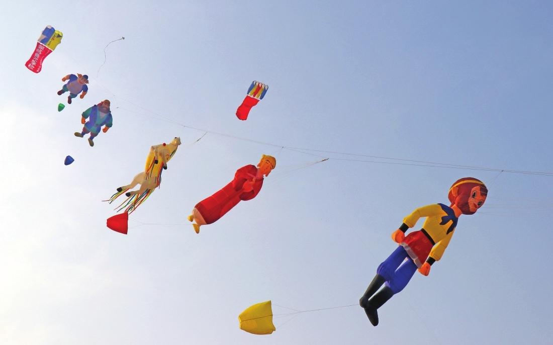 日前,途經淮南科技館西側廣場,忽見天空浮現斑斕夢境——一個個娃娃、各式景物造型的風箏在空中翩躚起舞,它們中有《哪吒鬧海》里的經典神話形象,有《西游記》里的八戒、悟空等等,這些故事里的神話人物造型風箏栩栩如生,在澄澈藍天的映襯下絢麗奪目。經了解,這一空中奇景出自一群退休的老年風箏愛好者之手。冬日的暖陽下,他們以絲線牽動童趣,在廣場上空織出夢幻的天幕,悄然綻放出一個舞動的“童話世界”……(通訊員:王傳旭)