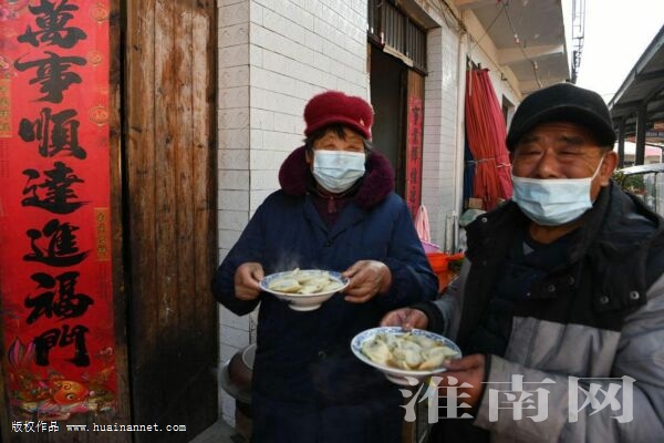▲壽縣安豐塘鎮(zhèn)蘇王街道群眾吃熱乎乎的餃子。
