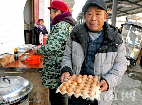 ▲12月19日,安徽省淮南市壽縣安豐塘鎮(zhèn)蘇王街道姚傳永老人買雞蛋,準備包餃子。