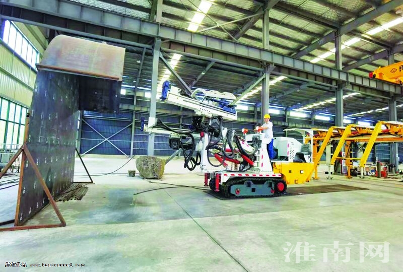 在10000平方米的精加工車間,車間負責人謝志鵬正在調試最新研制的“雙臂硬巖掘錨護一體鑿巖機”,履帶驅動、機械手臂在謝志鵬的精心操作下,對準炮眼模擬鑿巖。“這款掘錨護一體鑿巖機集挖掘、錨固、支護為一體,融入了最新的機械、電子高科技,備受礦山企業的青睞。”謝志鵬告訴記者。