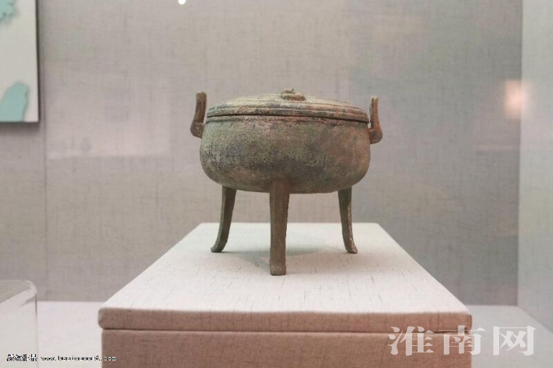 在淮南市博物館內,陳列著一件銅鼎。這件銅鼎與一般足部比較粗壯、耳部比較肥厚的楚式鼎有所不同,它的三足比較細長,耳部比較單薄,有著“越式鼎”的風格。