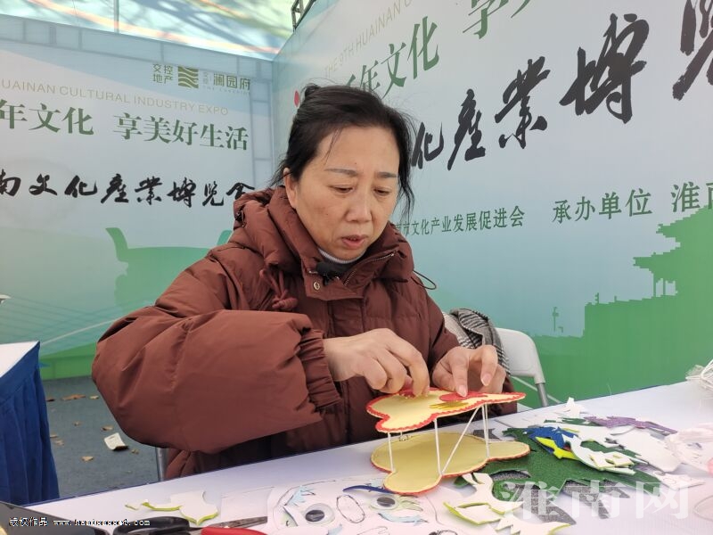 “這個是兔子造型的花燈嗎?好漂亮啊!”“這個花燈跟我們小時候見過的好像有點不一樣呀!”在淮南燈彩展臺前,不少市民圍著各式改良后的燈彩制品駐足欣賞,非遺傳承人沈長鳳一邊向大家介紹各式手工制品,一邊展示制作工藝。 沈長鳳告訴淮河早報、淮南網記者,燈彩又叫“花燈”,始于西漢、興于隋唐,是中國的一種傳統民間手工藝品,距今已有近兩千年的歷史。而其制作的燈彩制品在傳統技藝上進行了改良,用鐵絲搭建骨架,用高級綢緞做外衣,并手工繪制圖案,最后用金邊進行裝飾;不僅融入了淮南元素,還兼具趣味與收藏價值,入選了淮南市田家庵區第二批非物質文化遺產項目。