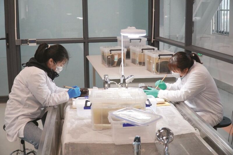 (記者 廖凌云 攝影報道)2月22日,淮河早報、淮南網(wǎng)記者探訪了淮南武王墩墓考古實(shí)驗室,現(xiàn)場見證了考古工作人員對出土文物進(jìn)行清理、整理和保護(hù)的場景。目前,建筑面積達(dá)4900平方米的考古實(shí)驗(二期)和考古方艙已正式投入使用,為文物保護(hù)工作提供了有力保障。