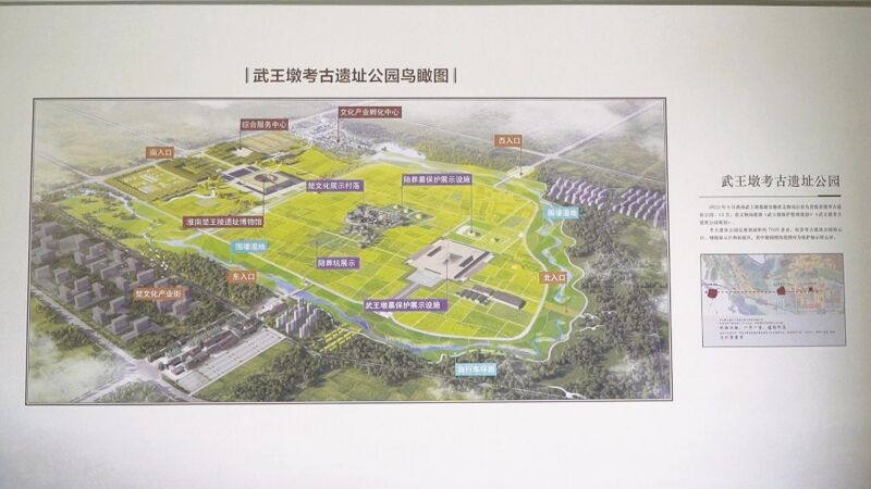 淮南武王墩考古遺址公園于2022年獲批安徽省首批省級考古遺址公園。為科學規劃遺址保護與利用,目前已編制完成《淮南武王墩保護管理規劃》和《淮南武王墩考古遺址公園規劃》。規劃以武王墩及其背景環境為主體,涵蓋考古工作站、展示利用設施、農田景觀、游客服務中心、文化產業孵化中心等建設內容,旨在完善科研、教育、休憩等功能,打造集文物保護、文化傳承、旅游開發于一體的綜合性遺址公園。