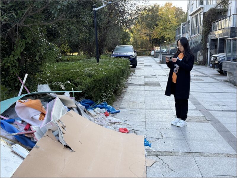 “在這里上班挺好,主要與小區(qū)居民打交道,按時下班,還能順路買個菜,生活充實也開心。”褚雯雯笑著說道。日常工作中,她不僅是門崗登記員,也負(fù)責(zé)小區(qū)環(huán)境巡查。當(dāng)天在19號樓前,她發(fā)現(xiàn)一處隨意傾倒的建筑垃圾后,立即拍照上報;在17號樓裝修現(xiàn)場,她提醒工人注意施工時間,避免擾民。細(xì)致的工作,讓她成為小區(qū)管理中不可或缺的一環(huán)。