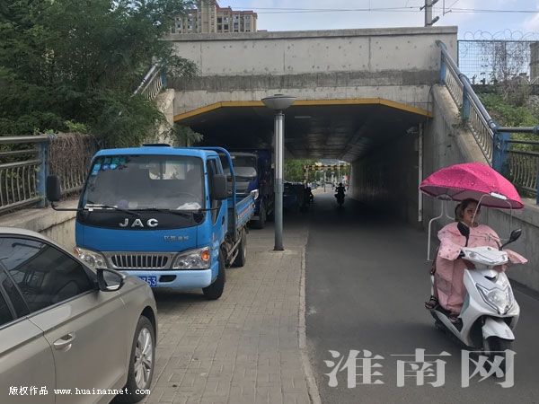 在淮舜南路與洞山東路的交叉口,有一座鐵路下穿立交橋,多年來這里一直是城市交通主要擁堵點之一。2015年,在克服多方困難后,淮舜南路鐵路下穿立交橋擴建工程終于順利開工。完工后的下穿立交橋,不僅解決了“腸梗塞”問題,而且兩側綠化如蔭路燈如景、人車暢行?山,淮河早報、淮南網記者卻接到市民來電,稱這處下穿立交橋竟成了“公共停車場”,不少貨車、鏟車、小轎車把人行道占得滿滿當當,嚴重影響了來往路人的通行。接報后,淮河早報、淮南網記者隨即對此處進行了探訪。
